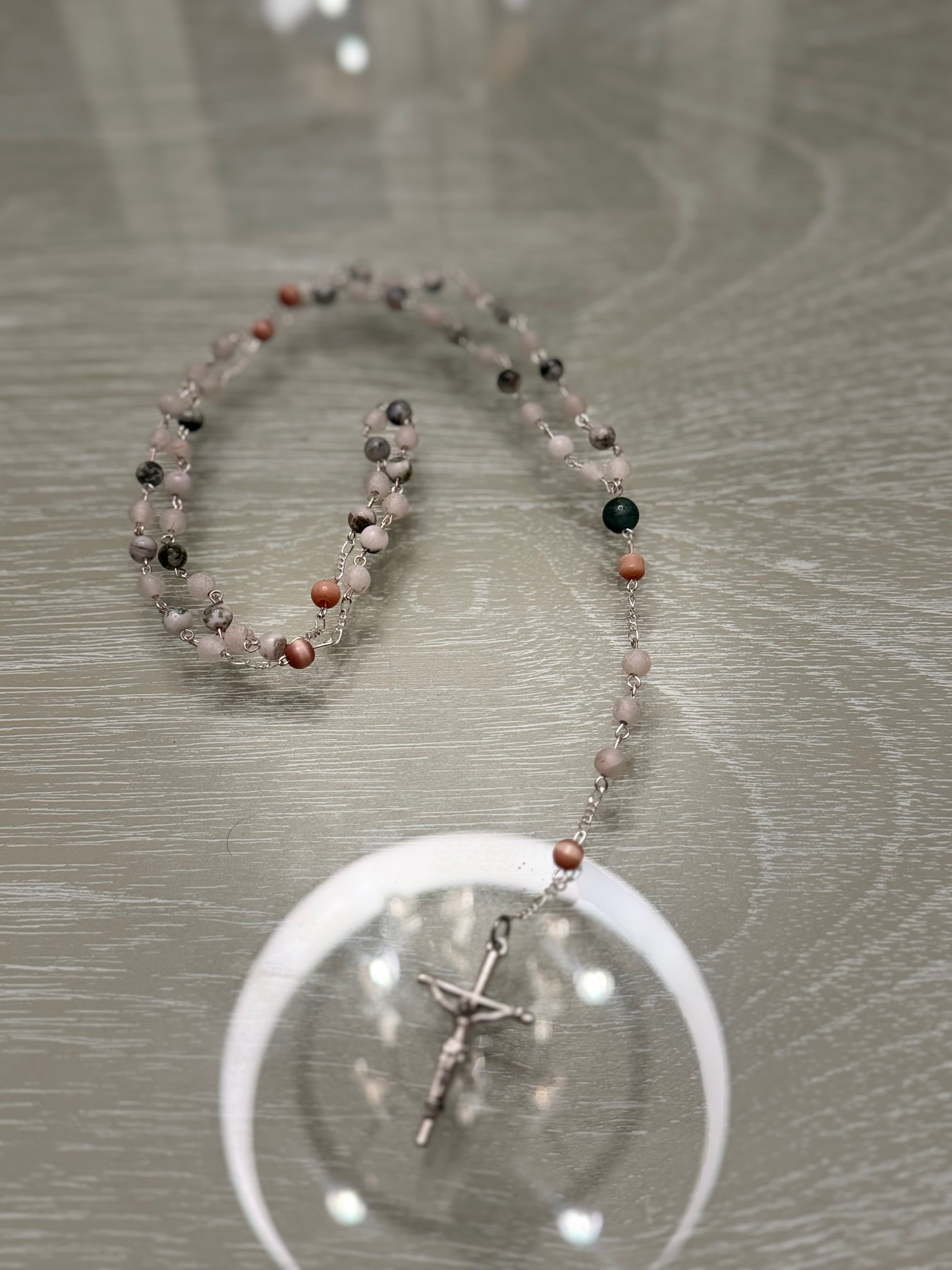 While our main collection features mixed-metal rosaries, we're happy to craft custom pieces in other metals. Inquire for more details.
